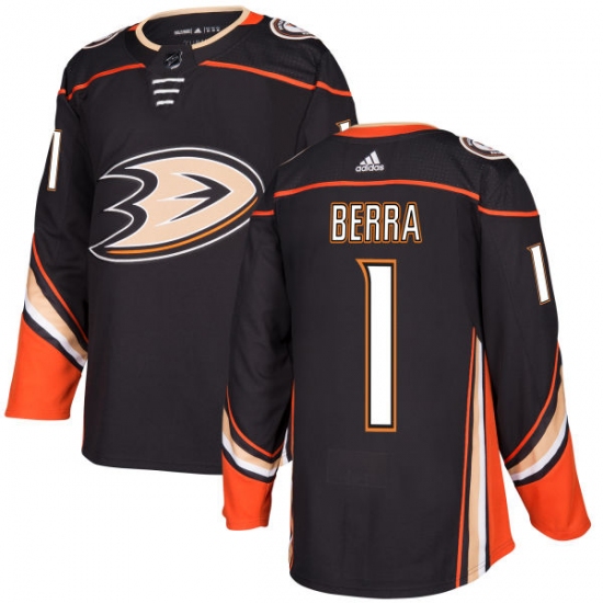 Home>NHL>Anaheim Ducks>Reto Berra>Men's Adidas Anaheim Ducks #1 Reto Berra Authentic Black Home NHL Jersey