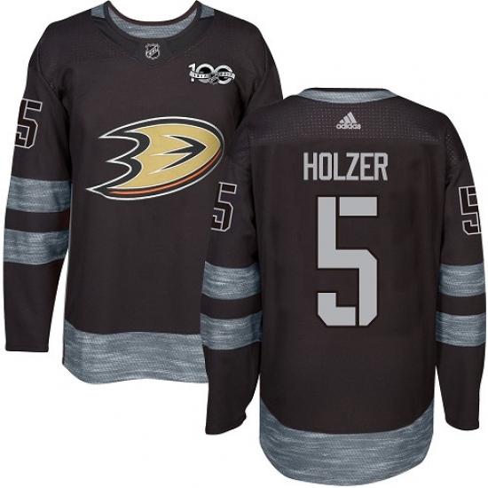 Home>NHL>Anaheim Ducks>Korbinian Holzer>Men's Adidas Anaheim Ducks #5 Korbinian Holzer Authentic Black 1917-2017 100th Anniversary NHL Jersey