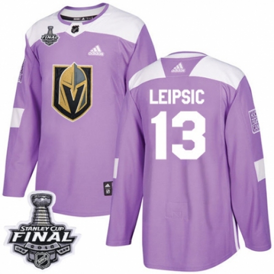 >Men's Adidas Vegas Golden Knights #13 Brendan Leipsic Authentic Purple Fights Cancer Practice 2018 Stanley Cup Final NHL Jersey