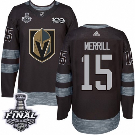 Men's Adidas Vegas Golden Knights #15 Jon Merrill Authentic Black 1917-2017 100th Anniversary 2018 Stanley Cup Final NHL Jersey