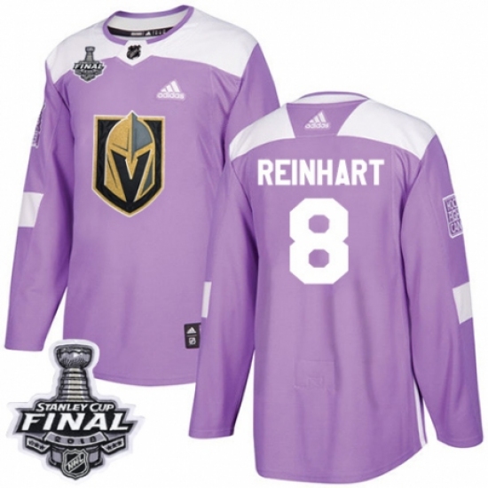 Men's Adidas Vegas Golden Knights #8 Griffin Reinhart Authentic Purple Fights Cancer Practice 2018 Stanley Cup Final NHL Jersey