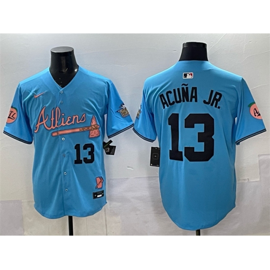Men's Atlanta Braves #13 Ronald Acuna Jr. Blue 2024 Atliens & Peach With Outkast Vapor Limited Stitched Baseball Jersey