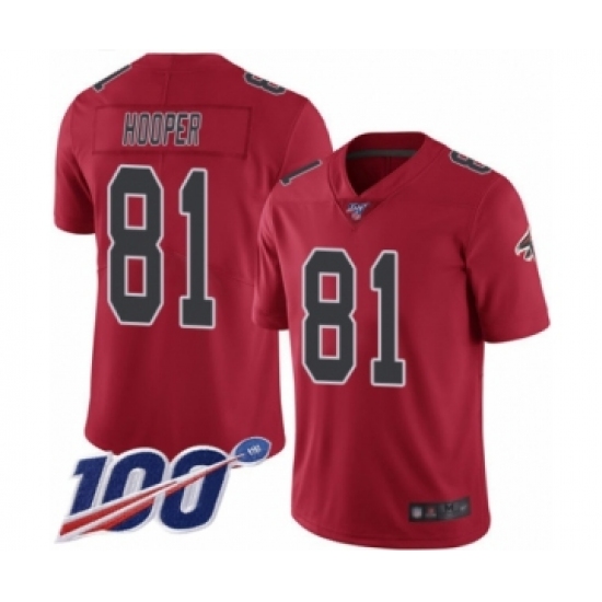 >Men's Atlanta Falcons #81 Austin Hooper Limited Red Rush Vapor Untouchable 100th Season Football Jersey