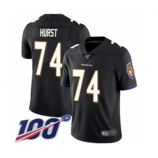 Men's Baltimore Ravens #74 James Hurst Black Alternate Vapor Untouchable Limited Player 100th Season Football Jersey