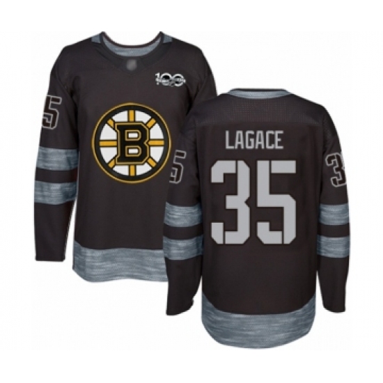 >Men's Boston Bruins #35 Maxime Lagace Authentic Black 1917-2017 100th Anniversary Hockey Jersey