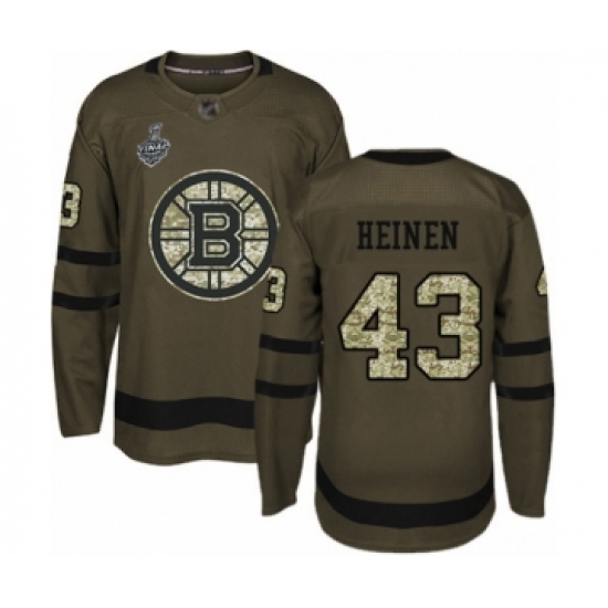 >Men's Boston Bruins #43 Danton Heinen Authentic Green Salute to Service 2019 Stanley Cup Final Bound Hockey Jersey