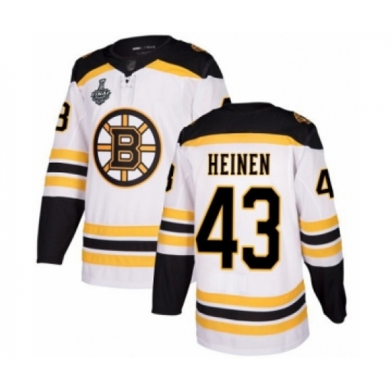 Men's Boston Bruins #43 Danton Heinen Authentic White Away 2019 Stanley Cup Final Bound Hockey Jersey
