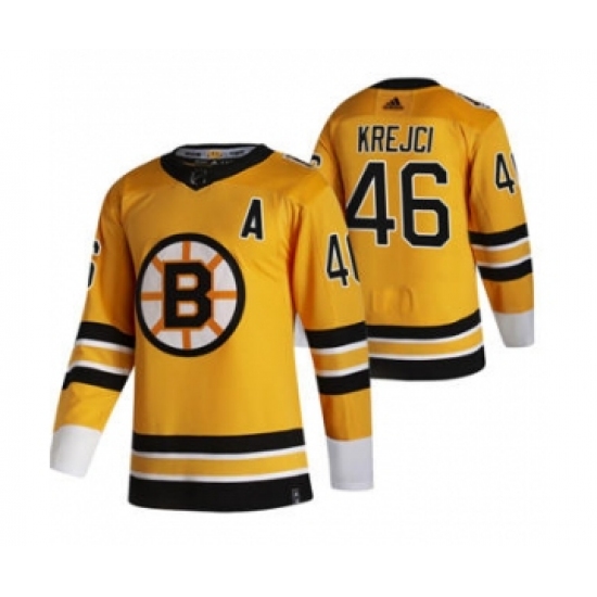>Men's Boston Bruins #46 David Krejci Yellow 2020-21 Reverse Retro Alternate Hockey Jersey