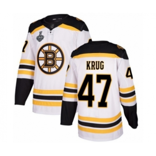 Men's Boston Bruins #47 Torey Krug Authentic White Away 2019 Stanley Cup Final Bound Hockey Jersey