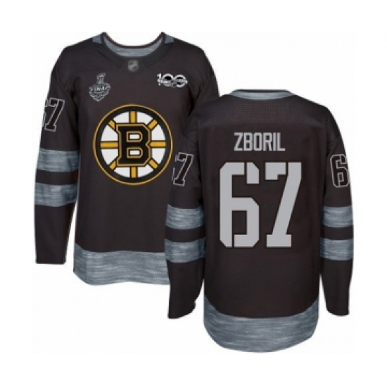 >Men's Boston Bruins #67 Jakub Zboril Authentic Black 1917-2017 100th Anniversary 2019 Stanley Cup Final Bound Hockey Jersey