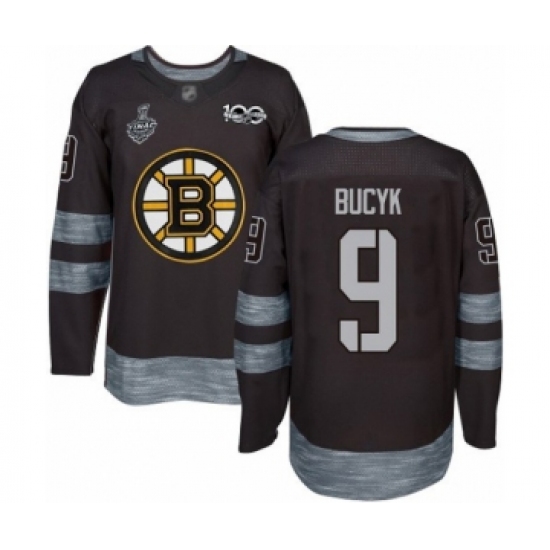 Men's Boston Bruins #9 Johnny Bucyk Authentic Black 1917-2017 100th Anniversary 2019 Stanley Cup Final Bound Hockey Jersey