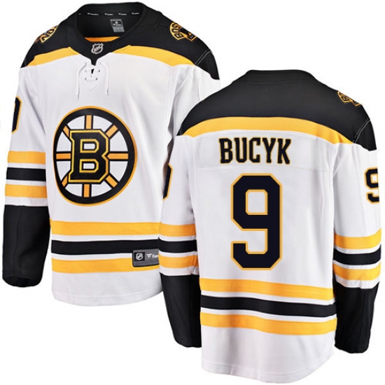 Home>NHL>Boston Bruins>Johnny Bucyk>Men's Boston Bruins #9 Johnny Bucyk Authentic White Away Fanatics Branded Breakaway NHL Jersey