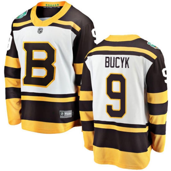 >Men's Boston Bruins #9 Johnny Bucyk White 2019 Winter Classic Fanatics Branded Breakaway NHL Jersey