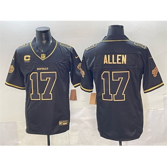 >Men's Buffalo Bills #17 Josh Allen Black Gold 2025 F.U.S.E. “Rivalries” With 4-Star C Vapor Limited Football Stitched Jersey