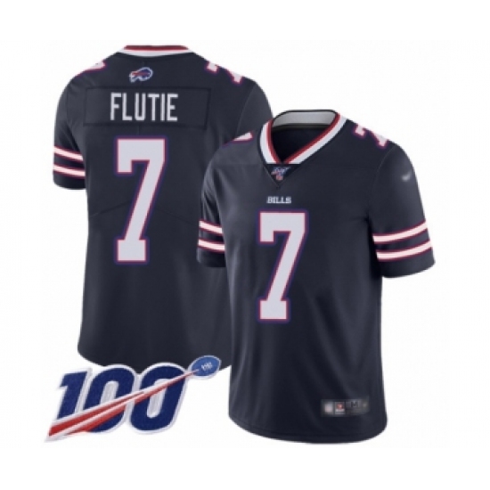 >Men's Buffalo Bills #7 Doug Flutie Limited Navy Blue Inverted Legend 100th Season Football Jersey