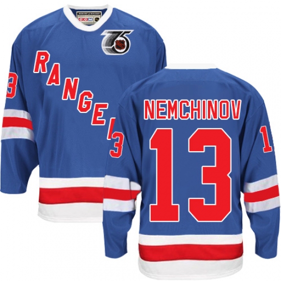 Home>NHL>New York Rangers>Sergei Nemchinov>Men's CCM New York Rangers #13 Sergei Nemchinov Authentic Royal Blue 75TH Throwback NHL Jersey