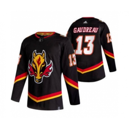 Men's Calgary Flames #13 Johnny Gaudreau Black 2020-21 Reverse Retro Alternate Hockey Jersey