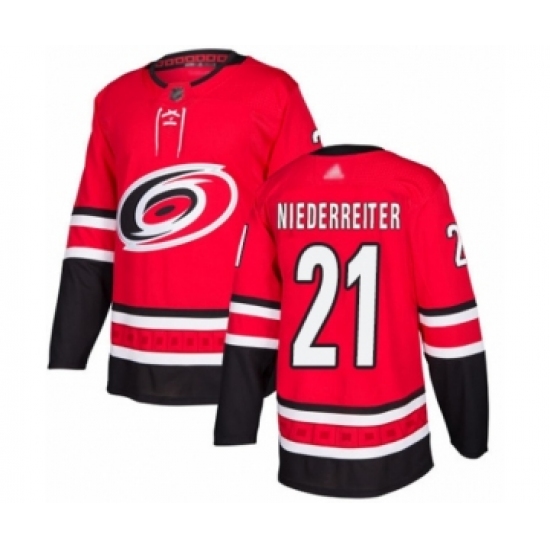 Men's Carolina Hurricanes #21 Nino Niederreiter Authentic Red Home Hockey Jersey