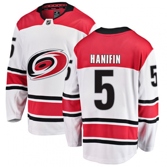 Men's Carolina Hurricanes #5 Noah Hanifin Fanatics Branded White Away Breakaway NHL Jersey