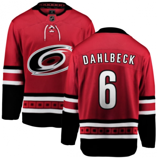 Home>NHL>Carolina Hurricanes>Klas Dahlbeck>Men's Carolina Hurricanes #6 Klas Dahlbeck Fanatics Branded Red Home Breakaway NHL Jersey