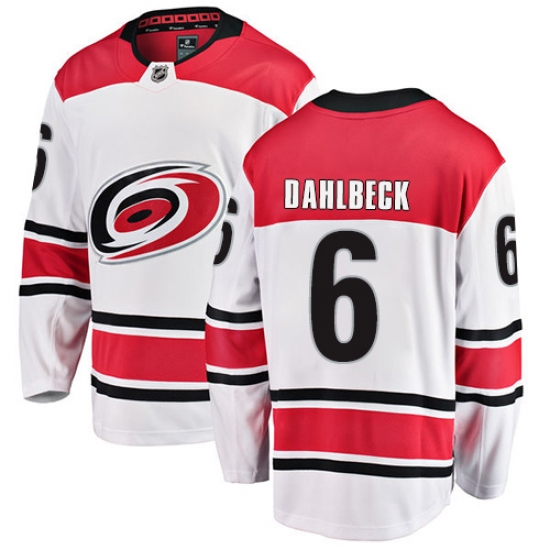 Home>NHL>Carolina Hurricanes>Klas Dahlbeck>Men's Carolina Hurricanes #6 Klas Dahlbeck Fanatics Branded White Away Breakaway NHL Jersey