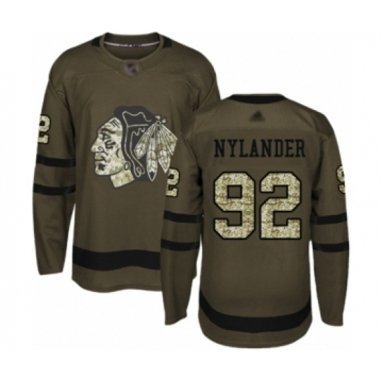 >Men's Chicago Blackhawks #92 Alexander Nylander Authentic Green Salute to Service Hockey Jersey