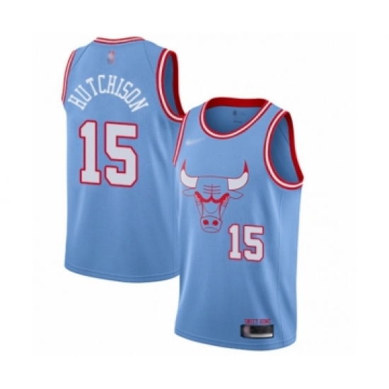 >Men's Chicago Bulls #15 Chandler Hutchison Swingman Blue Basketball Jersey - 2019 20 City Edition