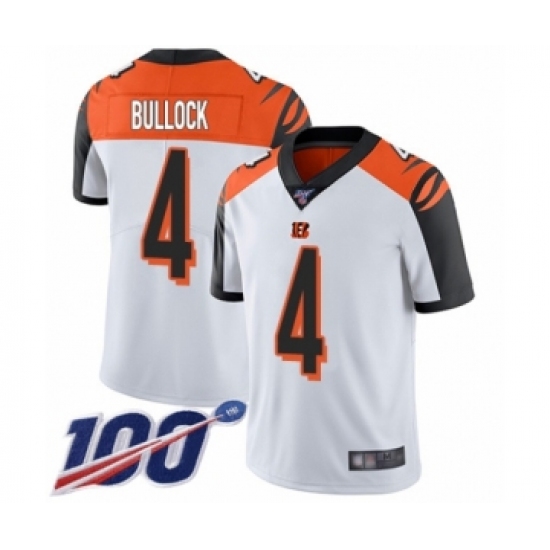 Men's Cincinnati Bengals #4 Randy Bullock White Vapor Untouchable Limited Player 100th Season Football Jersey