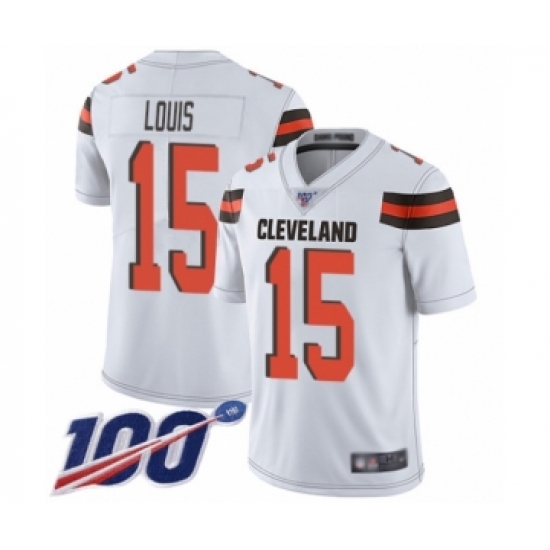 >Men's Cleveland Browns #15 Ricardo Louis White Vapor Untouchable Limited Player 100th Season Football Jersey