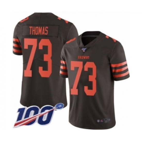 >Men's Cleveland Browns #73 Joe Thomas Limited Brown Rush Vapor Untouchable 100th Season Football Jersey