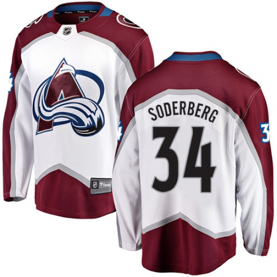 Home>NHL>Colorado Avalanche>Carl Soderberg>Men's Colorado Avalanche #34 Carl Soderberg Fanatics Branded White Away Breakaway NHL Jersey
