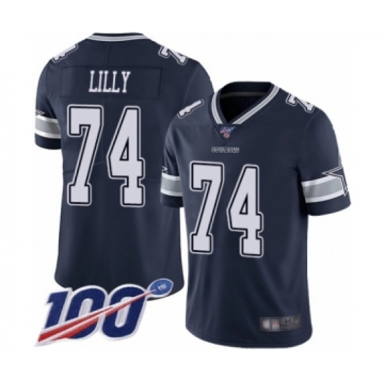 >Men's Dallas Cowboys #74 Bob Lilly Navy Blue Team Color Vapor Untouchable Limited Player 100th Season Football Jersey