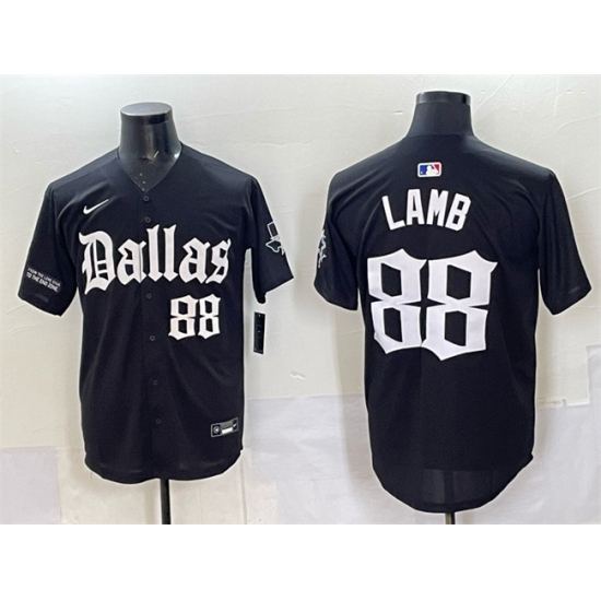 >Men's Dallas Cowboys #88 CeeDee Lamb Black 'Gothic Lone Star Edition' Limited Stitched Baseball Jersey