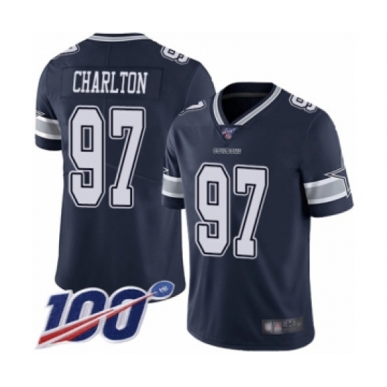Men's Dallas Cowboys #97 Taco Charlton Navy Blue Team Color Vapor Untouchable Limited Player 100th Season Football Jersey