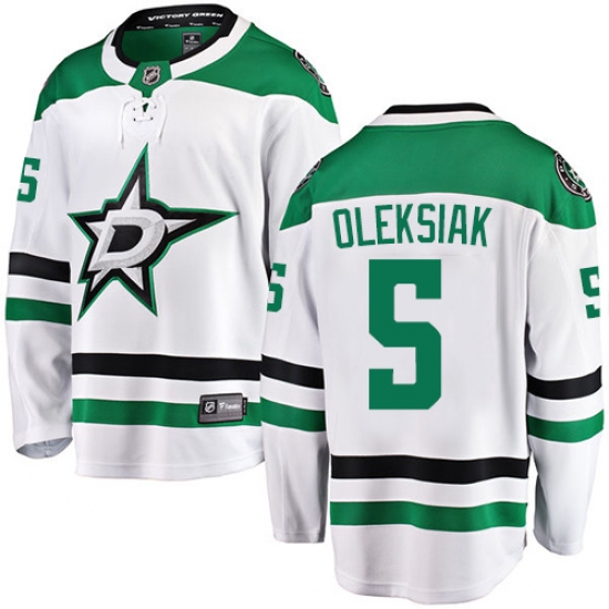 Home>NHL>Dallas Stars>Jamie Oleksiak>Men's Dallas Stars #5 Jamie Oleksiak Authentic White Away Fanatics Branded Breakaway NHL Jersey