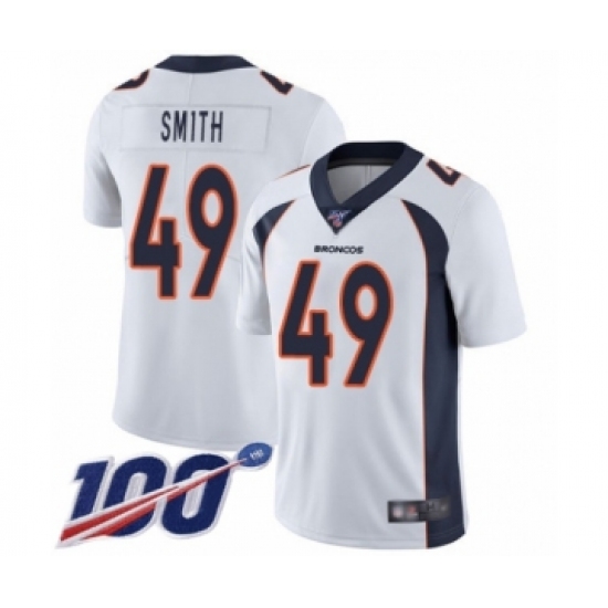 >Men's Denver Broncos #49 Dennis Smith White Vapor Untouchable Limited Player 100th Season Football Jersey