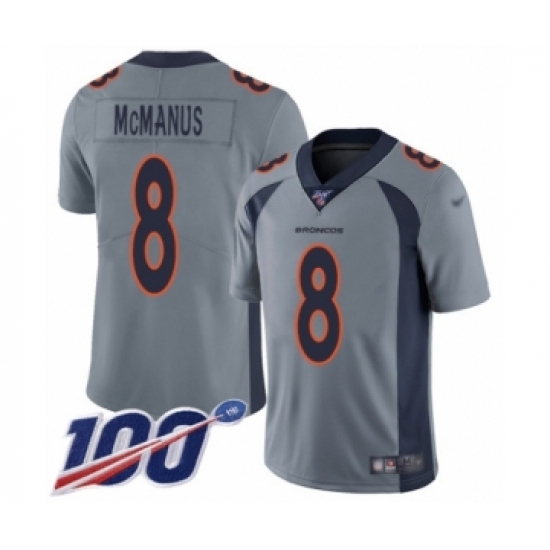 >Men's Denver Broncos #8 Brandon McManus Limited Silver Inverted Legend 100th Season Football Jersey