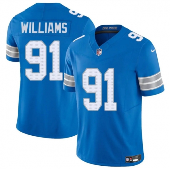 >Men's Detroit Lions #91 Tyleik Williams Blue 2025 F.U.S.E. Vapor Limited Football Stitched Game Jersey