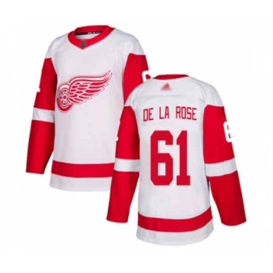 >Men's Detroit Red Wings #61 Jacob de la Rose Authentic White Away Hockey Jersey