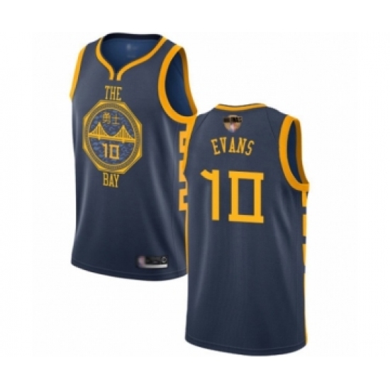 >Men's Golden State Warriors #10 Jacob Evans Swingman Navy Blue Basketball 2019 Basketball Finals Bound Jersey - City Edition