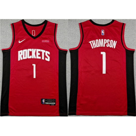 >Men's Houston Rockets #1 Amen Thompson Red Icon Edition Stitched Jersey