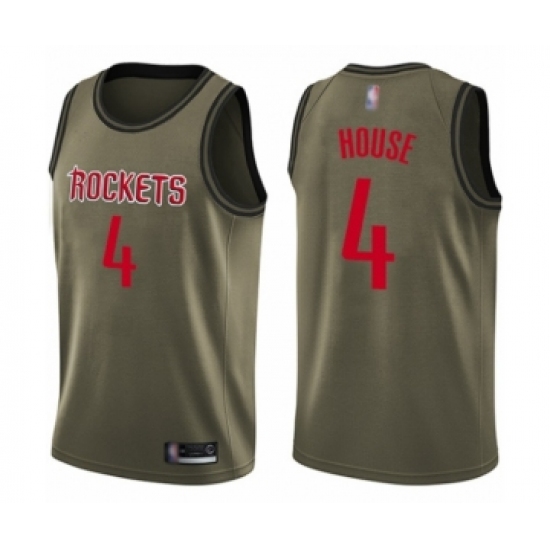 >Men's Houston Rockets #4 Danuel House Swingman Green Salute to Service Basketball Jersey