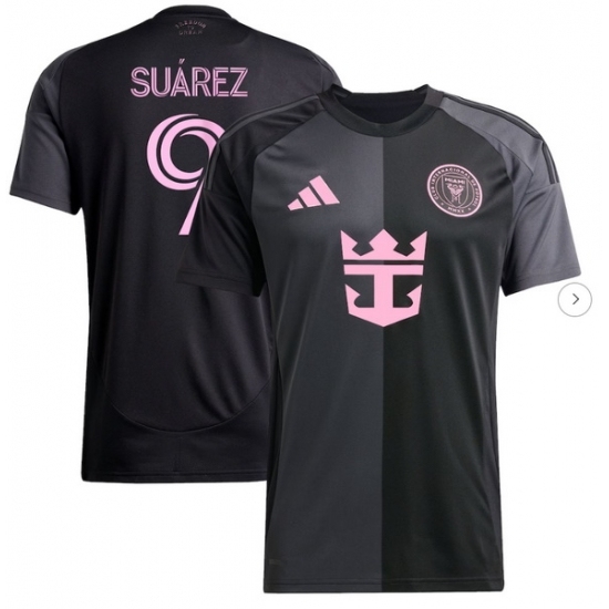 Men's Inter Miami CF #9 Luis Suárez 2023-24 Black Away Soccer Jersey Suit