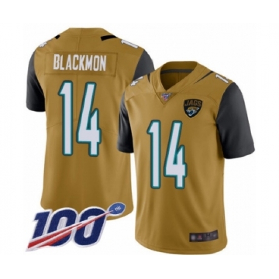 >Men's Jacksonville Jaguars #14 Justin Blackmon Limited Gold Rush Vapor Untouchable 100th Season Football Jersey