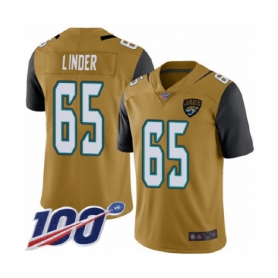 >Men's Jacksonville Jaguars #65 Brandon Linder Limited Gold Rush Vapor Untouchable 100th Season Football Jersey