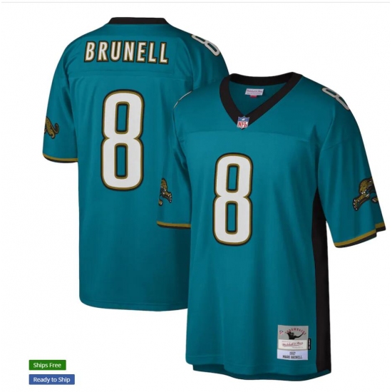 Men's Jacksonville Jaguars #8 Mark Brunell 1997 Mitchell & Ness Teal NFL Throwback Football Jersey