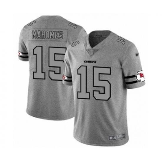 Men's Kansas City Chiefs #15 Patrick Mahomes II Limited Gray Team Logo Gridiron Football Jersey