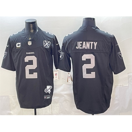 Men's Las Vegas Raiders #2 Ashton Jeanty Black 2025 Draft F.U.S.E. With 4-Star C Nevada Silver Stat And 65th Anniversary Stitched Football Jersey