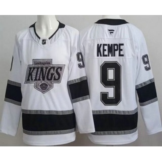 >Men's Los Angeles Kings #9 Adrian Kempe White Authentic Jersey