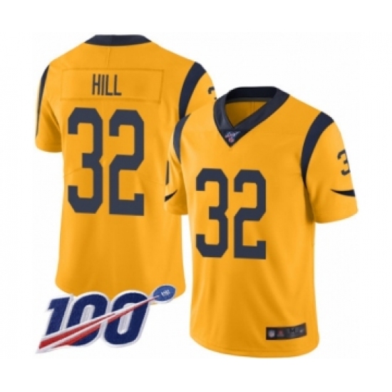 >Men's Los Angeles Rams #32 Troy Hill Limited Gold Rush Vapor Untouchable 100th Season Football Jersey